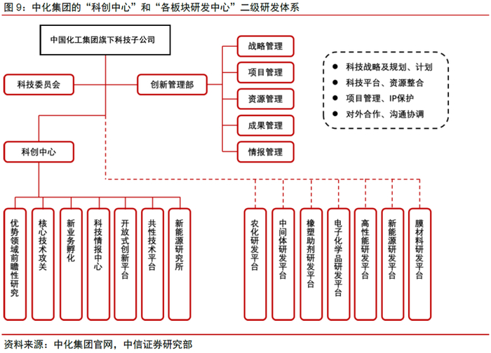①中化集团目前拥有沈阳化工研究院、浙江省化工研究院两个整建制专业研究院,同时着眼于国家粮食安全和现代种业发展,建成了国内种业企业最大的自主研发基地——中国种子生命科学技术中心。中化集团拥有9个国家级研发平台,包括国家重点实验室3个、国家工程(技术)研究中心3个、国家安全评价中心1个、国家认定企业技术中心2个。
