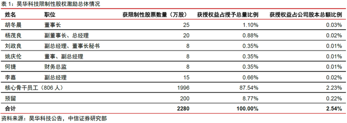 昊华科技2019年12月31日发布公告,宣布公司成立来的第一次限制性股票激励计划,对公司高级管理人员以及对公司经营业绩和持续发展有直接影响的核心技术人员和管理骨干等实施中长期激励计划。公司限制性股票激励的总体情况如下表所示。