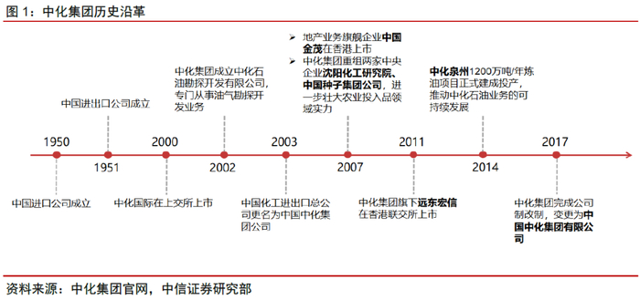 中化集团:前身是中国化工进出口总公司,是新中国第一家国营对外贸易公司,于1950年成立。中化集团的主营业务涵盖能源、农业、化工、地产、金融五大领域。其化工业务以生产、流通和国际贸易为主,在氟化工、中间体及新材料、农用化学品、聚合物添加剂、天然橡胶、石化原料营销、医药健康领域建立了较强的竞争优势。