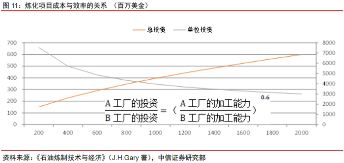 资源整合后,或带来规模效应和技术协同。炼油厂商的规模和工艺往往是炼厂成本最主要的影响因素,资源整合后,一方面两化旗下炼厂将形成资源和技术共享,整体生产效率具有较大提升空间;另一方面,伴随整合,后续部分项目仍将规划较大的产能规模,提升整体规模经济。最后,在石油化工领域两化相似度很高,可实现全产业链协同,形成以纵向一体化和高技术精深加工为主要特色的石油化工产业,并与两化的材料科学产业深度对接。