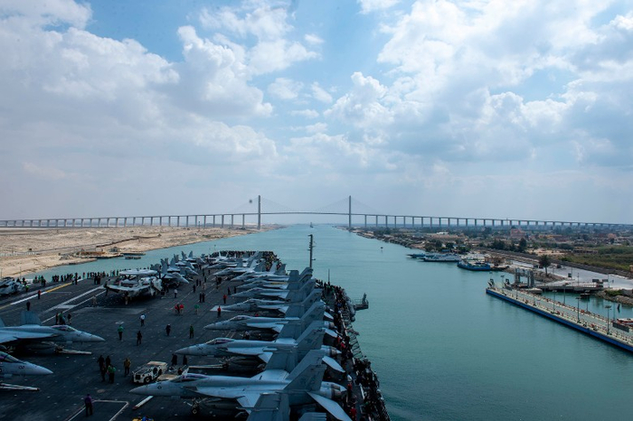 苏伊士运河“塞船”积压货轮还没清空,美军航母战斗群先过去了