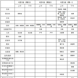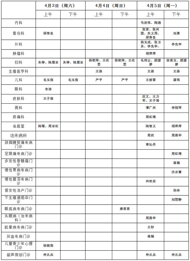 1、4月3—5日专家门诊、专科门诊按清明排班表出诊。