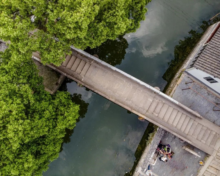 始建于宋代的万安桥位于上塘街,与下塘街普济桥同为典型的宋代单孔石拱桥。这对上海最古老的“姊妹桥”,共跨金泽塘,已然南北守望、相伴千年。