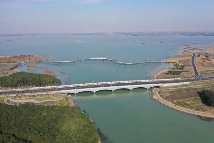 位于长三角生态绿色一体化示范区“C位”,总长约585.7米。桥将元荡湖湿地景观与环湖绿道对接,同时连接苏州吴江区和上海青浦区,步行、骑行就能来往沪苏两地。