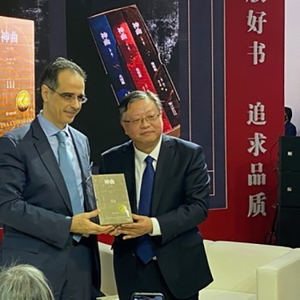 商务版《神曲》的出版,得到了意大利外交与国际合作部为在海外推广意大利文学作品专门设立的翻译资助的支持。首发式当天,意大利驻华使馆文化中心主任、文化参赞孟斐璇到会表示祝贺。会上,顾青代表商务印书馆向意大利驻华使馆文化中心赠送了商务版《神曲》,孟斐璇则代表意大利驻华使馆文化中心向商务印书馆回赠《意大利文化遗产》画册,双方进行了友好交流。