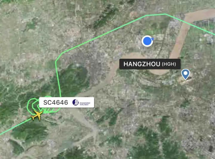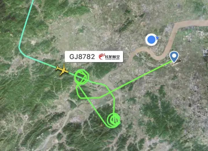 遇到类似情况的还有这趟长龙航空的GJ8782号航班,从郑州飞往杭州。飞机同样于9点40分左右由北进入杭州上空,一两分钟以后,同样进入盘旋等待状态。航班在空中盘旋了约40分钟后,才重新加入落地航线,并于晚上10点26分落地杭州机场,比计划落地时间延误了20多分钟。