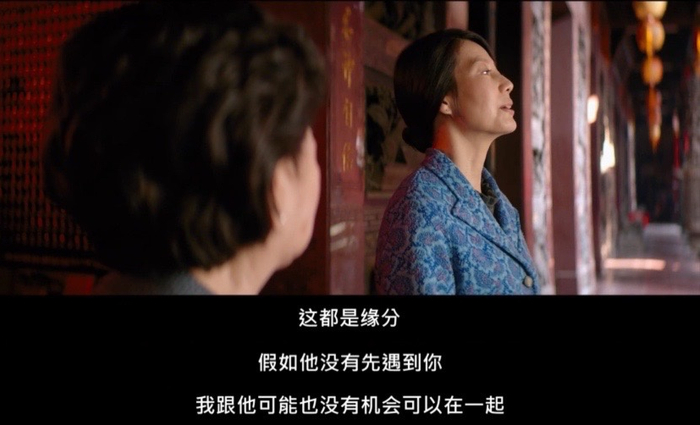 林秀英与女儿们的第二次深夜谈话,是在她道观遇见蔡小姐之后。原本笃信佛教的蔡小姐,为了能让陈伯昌的灵魂安歇(因为林秀英是按道教葬礼仪式布置的灵堂),来到道观祈福。她的这一举动以及随后关于“缘分”的谈话,让林秀英明白了众人特别是佳佳盛赞蔡小姐伟大的原因。世上没有几人,能够真正为了爱人放下成见。