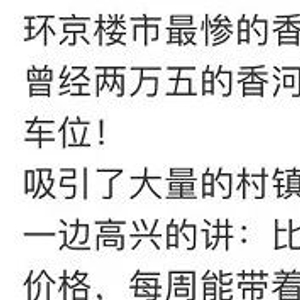 该大V举例称,曾经以2.5万元/平方米出售的香河富力新城,清明推出特价房单价仅8000元/平方米,且买房就送车位。