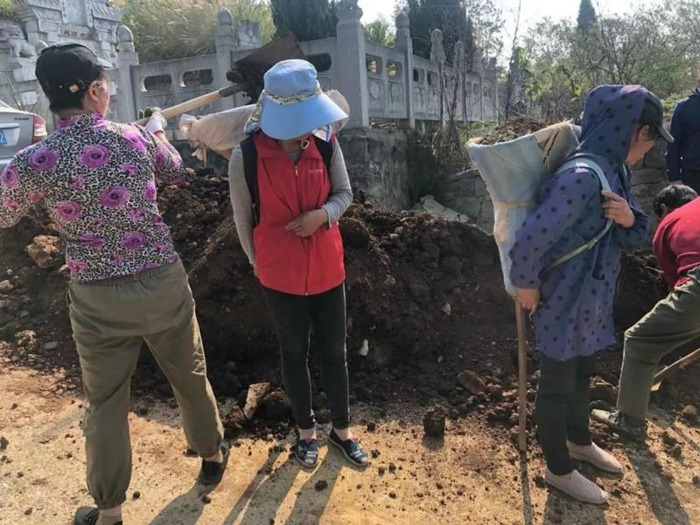 坪子上村的墓地规模不是最大的。都香高速往西银壶社区平寨村的山上,还有更多的墓穴,七八个当地的农村妇女正在背运泥土,他们在当地被称为“马帮”。