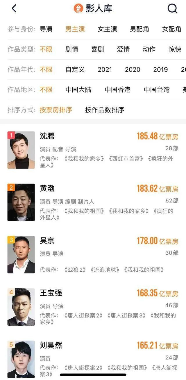 这样一来,沈腾登顶最具票房号召力男演员之位似乎毫无争议。