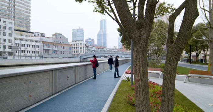 2000年的时候,苏州河达到了“岸绿”的目标,做了绿化带,种了很多树,但是树下是灌木,到防汛墙之间还有一个通道,成了“藏污纳垢”的地方,夜晚人走在那里,没有安全感。所以这个地方虽然有一个人行步道,但实际上很少人会走。如何让滨水空间的景观与公共功能重现,这是我们研究的问题。