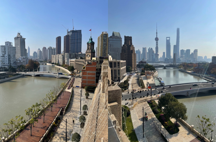 外白渡桥以北的这一片区属于虹口区北外滩,大约两三年前,上海开启了将北外滩作为城市中央商务区的规划,未来将与外滩、陆家嘴构成“黄金三角”。林立的高楼与不断入驻的企业已经表明了北外滩的潜力,但还需要推动其长远发展的活力。王林告诉澎湃新闻,公共空间和人性化的交流是城市活力的关键;通过释放苏州河沿岸的空间,能够为这个地区带来更多的活力。2019年,王林成为苏州河虹口段项目总设计师,经过研究,最终确立“共享街道”与“河畔会客厅”的设计方向。在她看来,整个改造过程中,重要的不是将设计强加于空间之上,而是要让这个地区既有的“宝藏”更好地展现在人们面前。以下为王林口述: