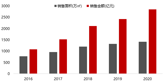 2020年,面临疫情大考和“三道红线”等监管政策,华润置地保持业绩稳健持续增长。 在开发销售型业务方面,2020年华润置地实现签约销售额2850亿元,销售目标完成率达108.79%,同比增长18%,近五年销售业绩符合增长率达27%,销售业绩继续稳居全国房地产企业销售业绩排行榜前十。