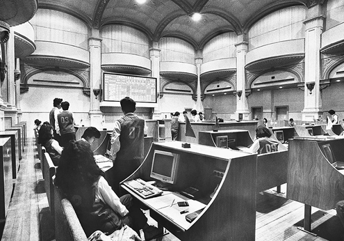▲1986年9月,中国工商银行上海信托投资公司静安分公司开办代理股票买卖业务,开业第一天代理卖出飞乐音响公司和延中实业公司发行的股票1000多股。图/新华社发