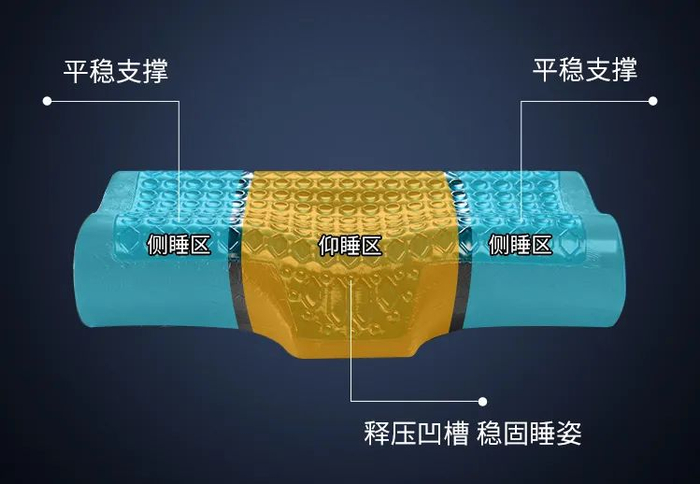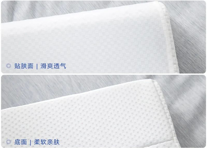 中间头窝处略低,两侧略高,中间还专门为颈部做了“延伸承托”。不管你是正睡,还是侧睡,它都能刚好托住你整个头颈,放松。