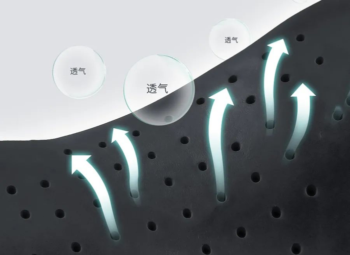 它用的记忆棉,是竹炭记忆棉,因为融入了竹炭粉末粒子,内部有大量透气孔,透气性好!