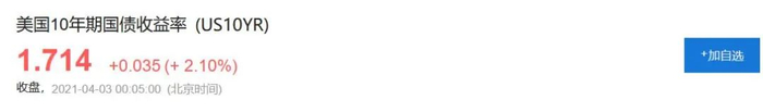 4月2日,美国十年期国债收益率涨至1.72%,刷新日高。
