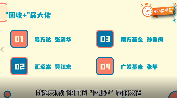 接下来,三分钟理财就理财给大家介绍几位“固收+”届大佬。