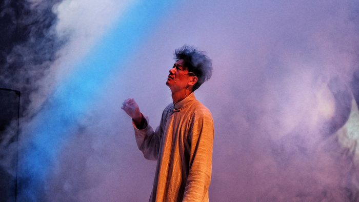 喻荣军(上海话剧中心艺术总监):看戏前我把自己放空,什么都不想,我就想看看陆帕想把这个《狂人日记》弄成什么样。但在剧场里,我觉得我很快被他干倒了,看的过程当中,从一开始就发现他在舞台上呈现东西特别从容,编剧、导演、舞美、灯光都是他,在他所熟悉氛围里面,把他想呈现的东西非常从容呈现出来。如同你带着所有想法过来,端出一桌菜,然后告诉你,我给你什么就是什么,我就这样慢慢就被他吸引住了,很多东西是慢慢晕染开的