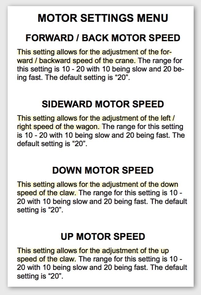 这是另一家公司 BMI Gaming 一款娃娃机的产品操作手册,可以看到它也将抓娃娃的过程分成抓取和拾起两个阶段,便于人为设置“手滑”。