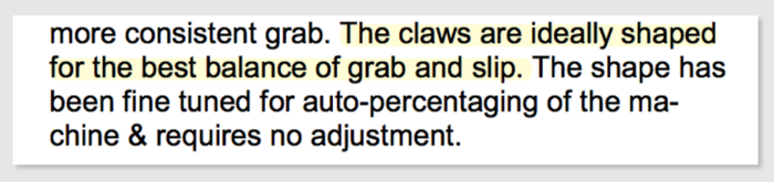 因为从一开始,厂家就没想让它能抓稳。下面这段说明书就明言:爪子的形状被完美制作成在抓住和滑落之间保持最佳平衡。