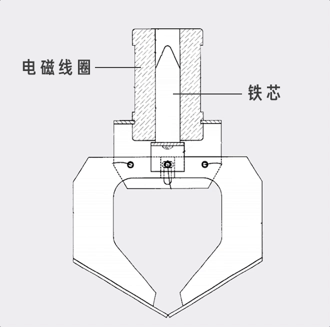 电磁铁的原理,你在高中就学过了。在断路状态下,爪子是松开的。一旦电流经过电磁线圈,线圈变为了一块电磁铁,铁芯就被吸上来,带动组件提升至固定位置,爪子则会闭合,做出“抓”的动作。