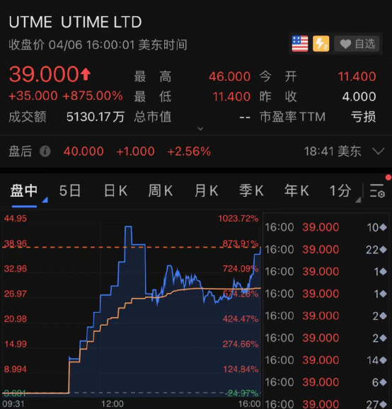 开盘后不久,联代科技经历多次熔断,股价一度涨至46美元,涨幅达1050%,刚上市就成了“十倍股”。
