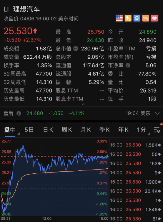 新能源车中概股中,蔚来汽车涨1.76%、小鹏汽车涨2.78%、理想汽车涨2.37%。