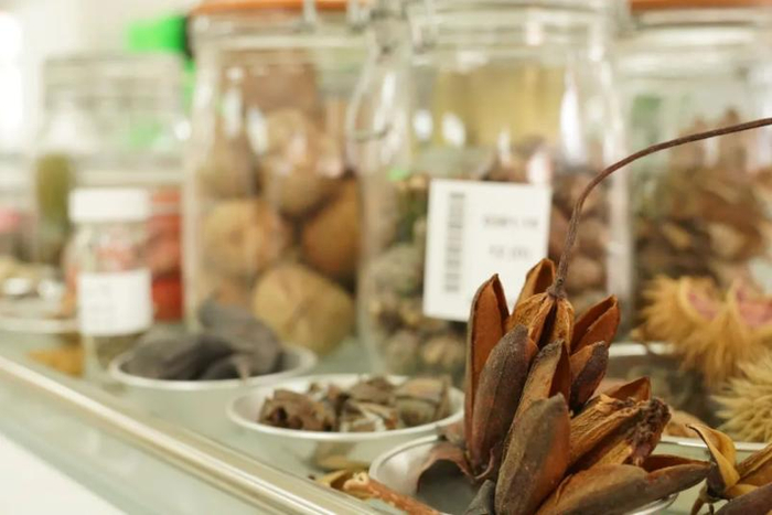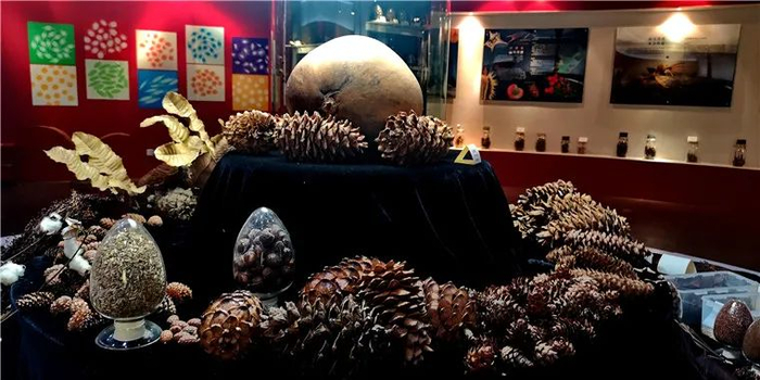 中国西南野生生物种质资源库种子博物馆陈列的各种植物种子。