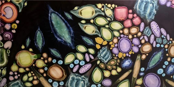 研究人员用X光对种子进行质量检测产生图像,并通过拼接着色形成的“种子幻境”。