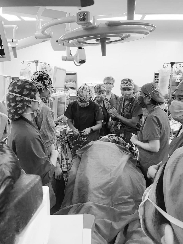 在一例心脏手术、过敏性休克患者的抢救现场,黄宇光委员(右三)正组织实施多学科救治。