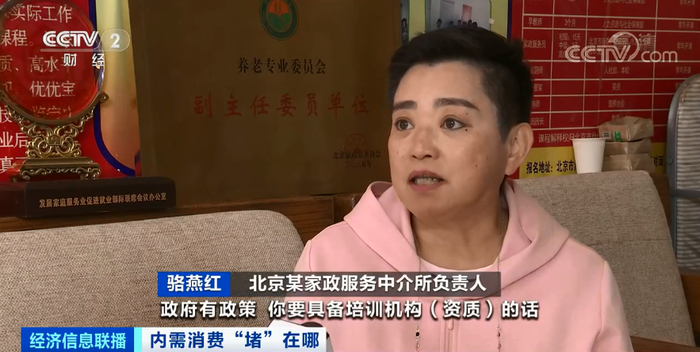 北京某家政服务中介所负责人 骆燕红:政府有政策,要具备培训机构资质的话,要有五名教师资格的老师,还得提供家政员的吃和住宿。对我们这种中小型企业来说,困难太大,投资太多。