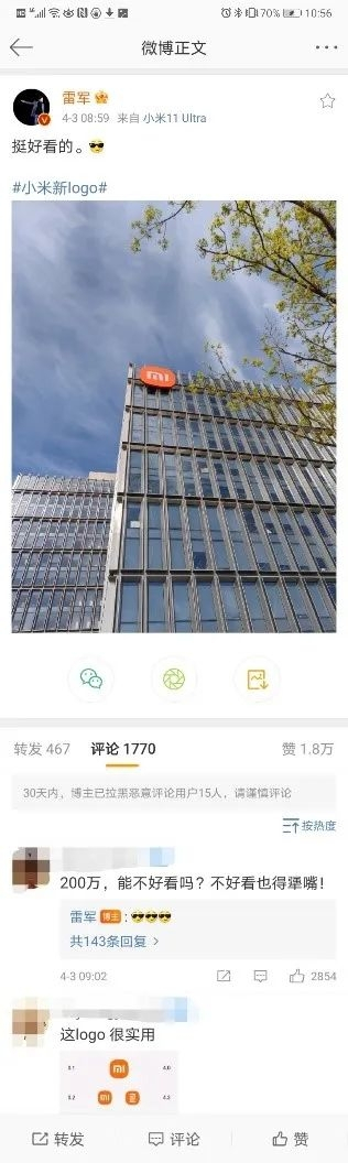 小米200万元新Logo遭群嘲!网友建议马上报警 雷军回应