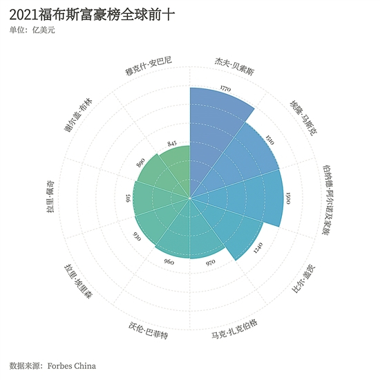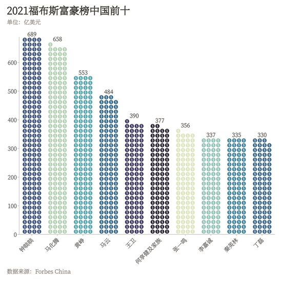 《福布斯》富豪榜团队负责人Kerry A. Dolan表示:“这是屡破纪录的一年,全球新上榜人数和亿万富豪总人数双双创下历史新高。此外,2021年首次见证全球亿万富豪财富总额突破10万亿美元大关,创造财富之快令人瞠目。”