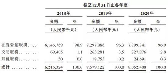 其他两块业务中,交易服务在报告期内的收入占比分别为1.1%、3.5%、2.8%,其他服务则为0、0.2%、0.3%,二者的“存在感”相当薄弱。