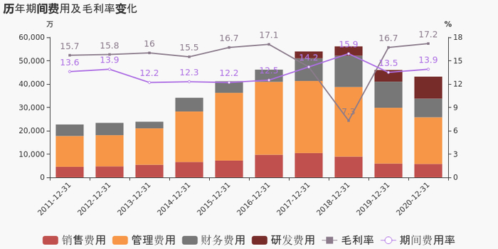 公司2020年营业成本25.8亿,同比下降9.5%,高于营业收入8.9%的下降速度,毛利率上升0.5%。期间费用率为13.9%,同去年相比变化不大。经营性现金流大幅下降54.9%至2.5亿。