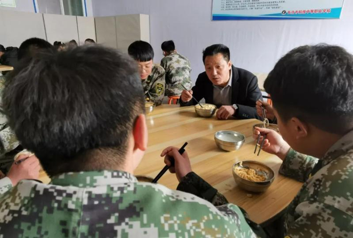 张俊成干的第一件事,是和学生们同吃同住。他把家安在了学校,把被子叠得像豆腐块,学生们早上6点集合跑操,他提前十分钟就站在了操场。吃饭时,他跟学生一起排队打饭、一个桌上吃饭。学生上晚自习,他就拿本书坐在一旁。学生课间打球,他就陪打,有时还故意输几个球……