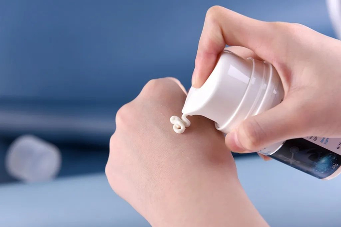 不含激素成分,敏感肌也能正常使用。挤出来的膏体很好抹开,温温的很舒服。