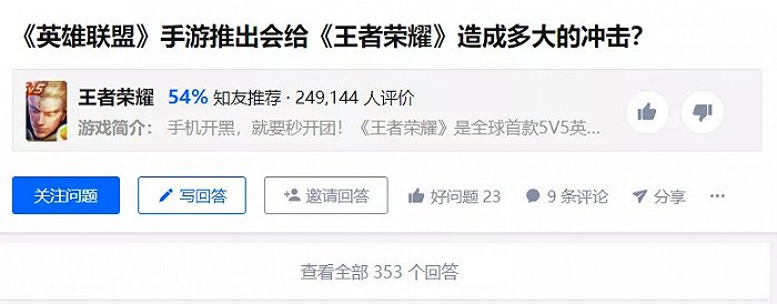 当然了,问题的答案也非常一致,不管是知乎、NGA、虎扑、贴吧等网络社区,还是从业者内部的聊天讨论,都不好看LOL手游能够实现赶超。甚至有人用当年的《DOTA2》和《英雄联盟》来比喻现在的LOL手游和《王者荣耀》——《DOTA2》和LOL手游同样有着原作IP的名气和粉丝基础,却在争夺新市场用户的战斗中败下阵来。