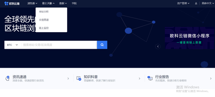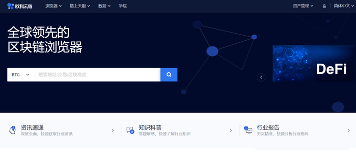 欧科云链OKLink是国内区块链大数据产品的先驱之一,2019年就开发出全球领先的多币种区块链浏览器,之后陆续丰富了多项功能,并在2020年9月正式上线链上天眼。
