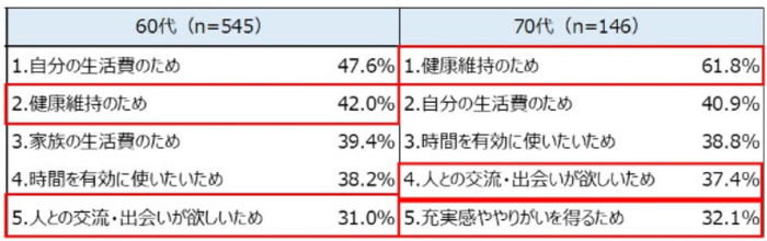 70岁以上的工作者,有61.8%是为了维持健康,37.4%为了与人交流,32.1%是为了活得充实。为了钱工作的不到一半。
