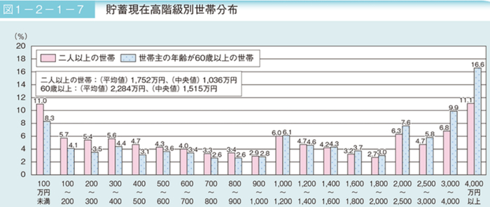 60岁以上的家庭中,有16.6%的家庭,存款超过4000万日元(237万人民币),这存款可不包括房产股票保险证券,就纯粹是现金。共计有40%的60岁以上家庭,存款超过2000万日元(118万人民币)以上噢。