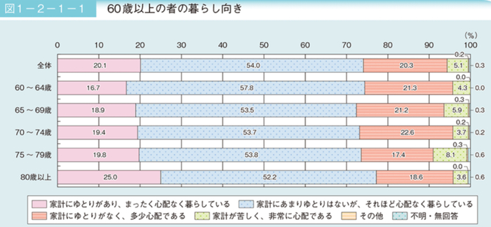 也就是说,60岁以上的日本人,有74.1%是完全不用担心生计的。