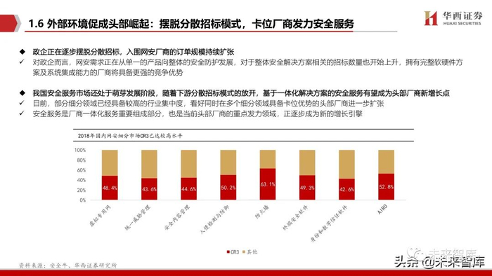外部环境促成头部崛起:摆脱分散招标模式,卡位厂商发力安全服务