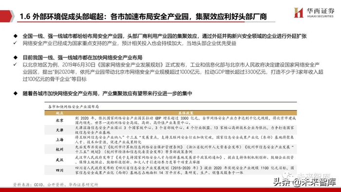 外部环境促成头部崛起:各市加速布局安全产业园,集聚效应利好头部厂商