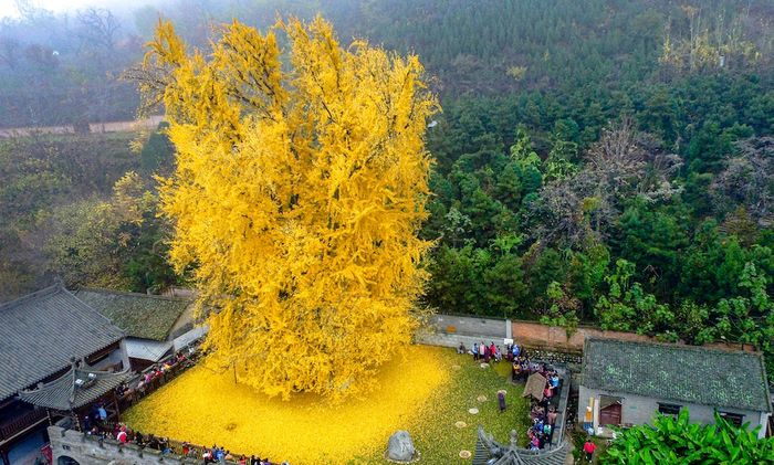 寺内拥有一棵千年古银杏,相传是当年唐太宗李世民亲手栽种的。 视觉中国 图