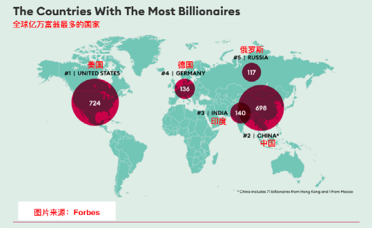 根据《福布斯》发布2021全球亿万富豪榜,今年榜单的新面孔超过40%来自中国内地,中国内地亿万富豪的数量一举跃升至626名。更令人瞩目的是大中华地区(内地及港澳台地区)首次在富豪人数方面超过美国,总数达到745人,此外,北京首次超过纽约,成为全球亿万富豪最多的城市。