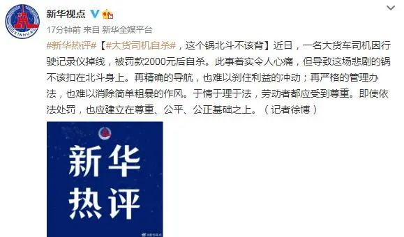 关于大货司机自杀一事,新华社也发表了评论: