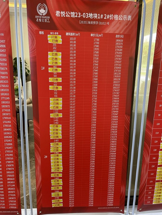 观澜湖君悦公馆价格公示表之一 图片来源:界面新闻