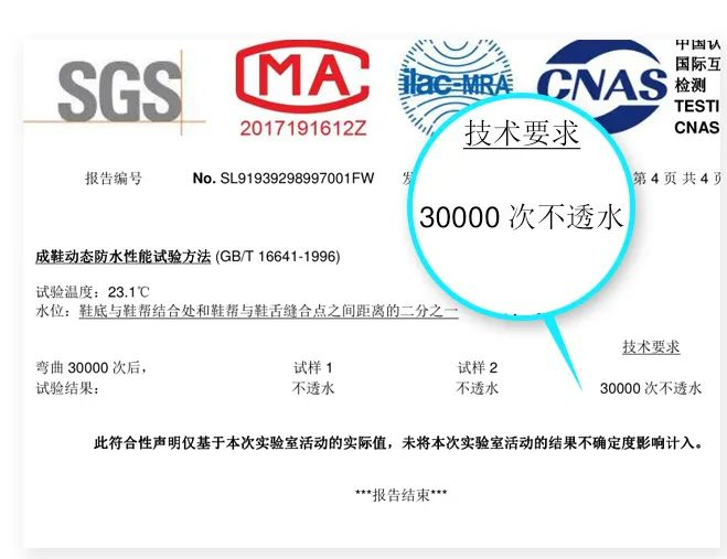 经过专业检测,量橙磁力防污鞋在模拟走路弯折 30000 次后,还有很好的防水性能。
